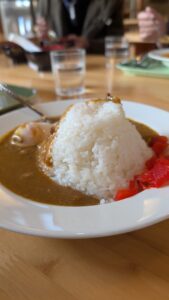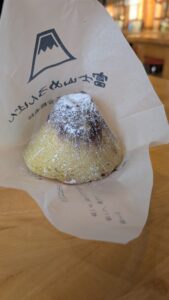 5合目のレストランでは、名物の富士山カレーや富士山メロンパンを堪能。